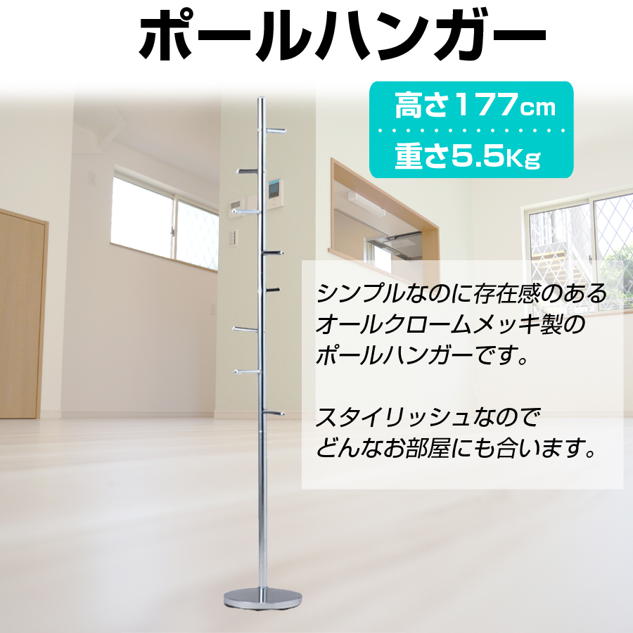 シンプルなのに存在感のあるオールクロームメッキ製のポールハンガーです。