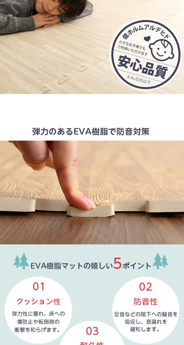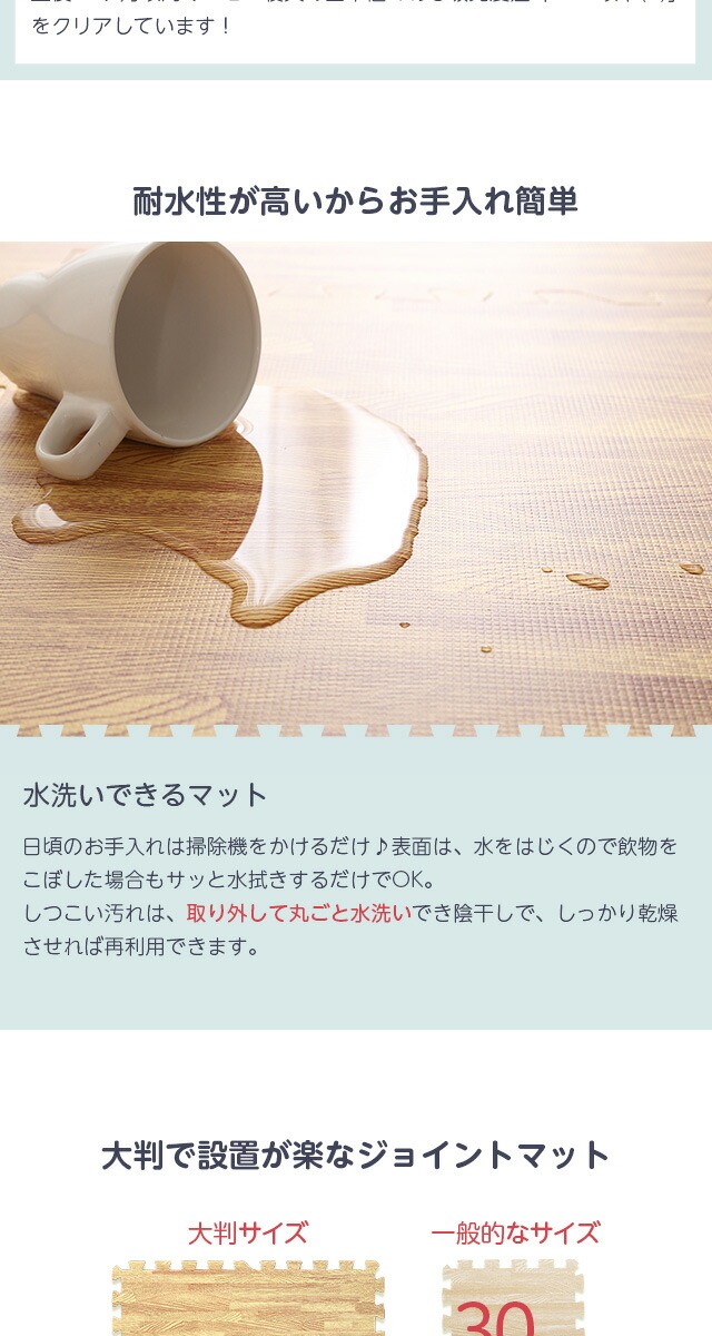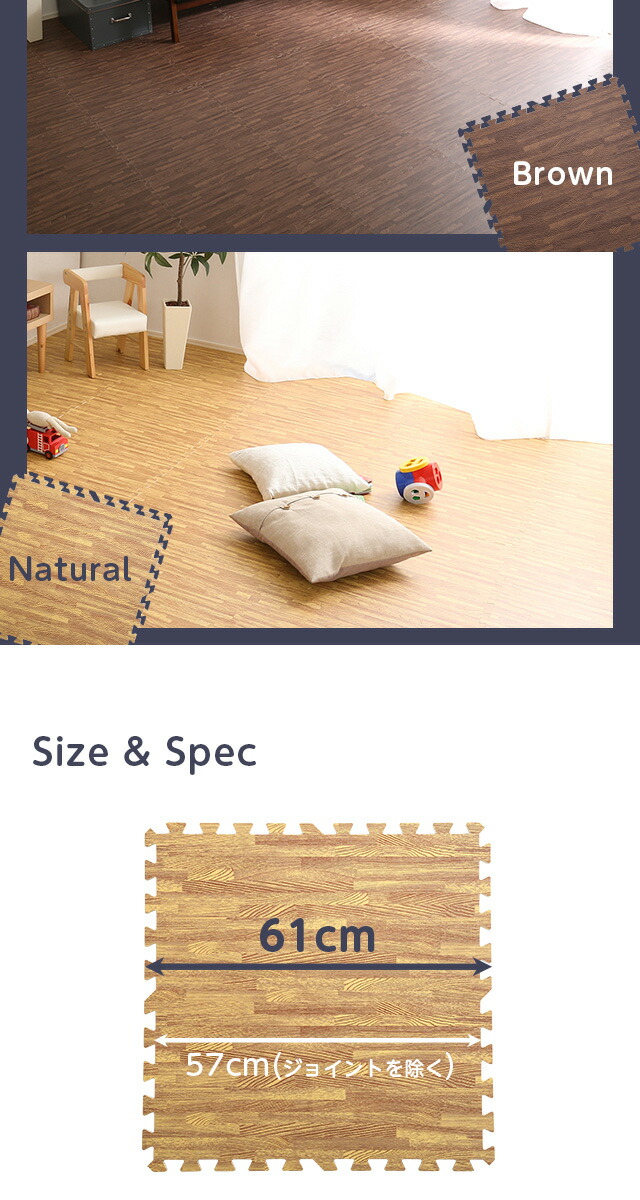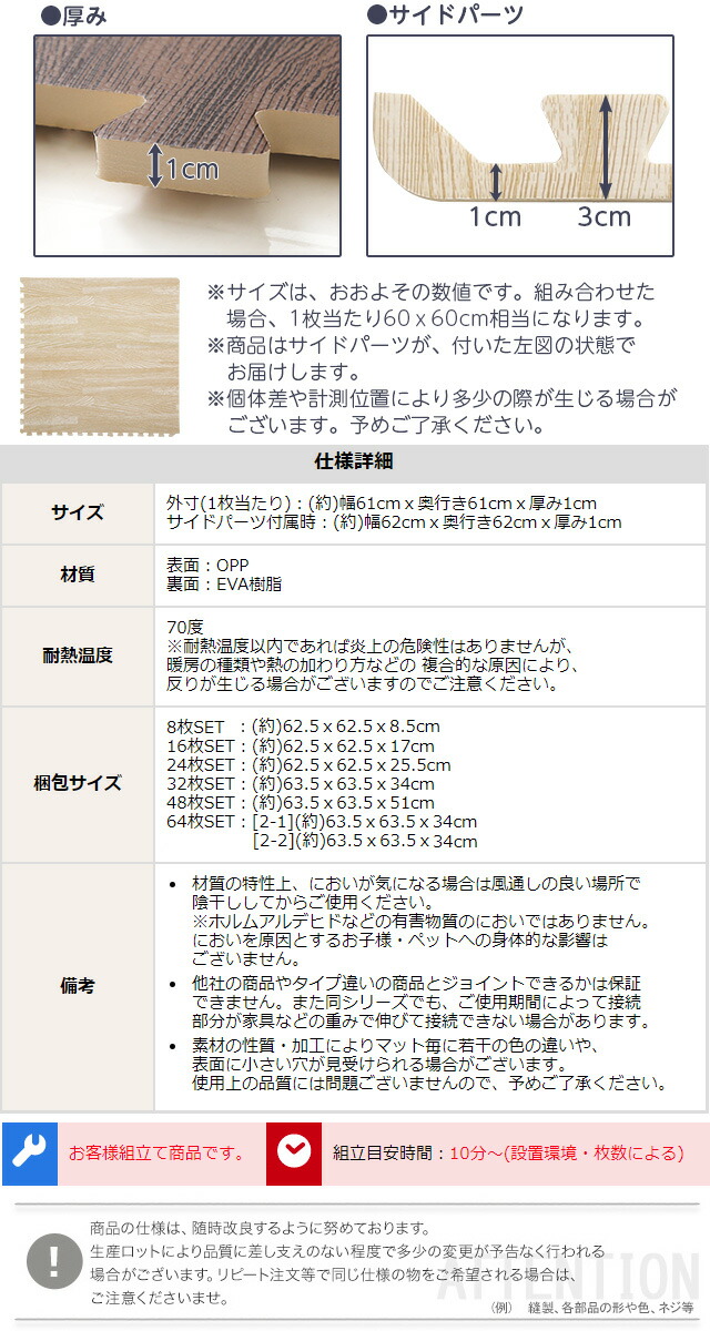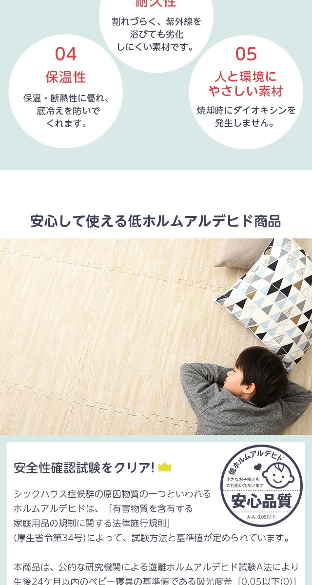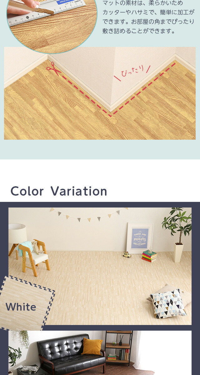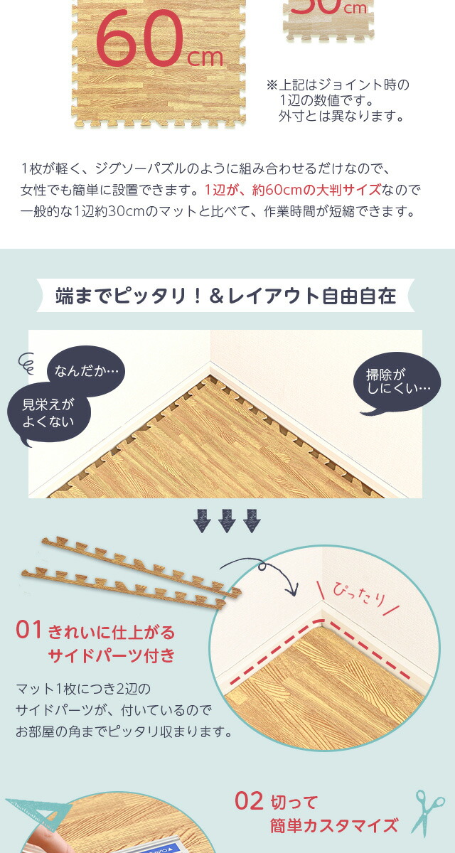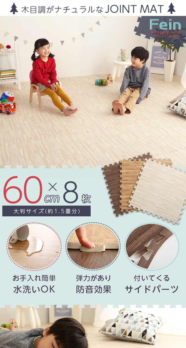 サイドパーツ付き!ナチュラルな木目調ジョイントマット 8枚セット(大判60cm)安心の低ホルムアルデヒド、防音、保温 Fein-ファイン-代引不可[ホワイト]