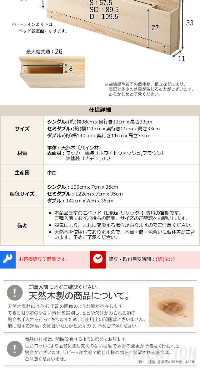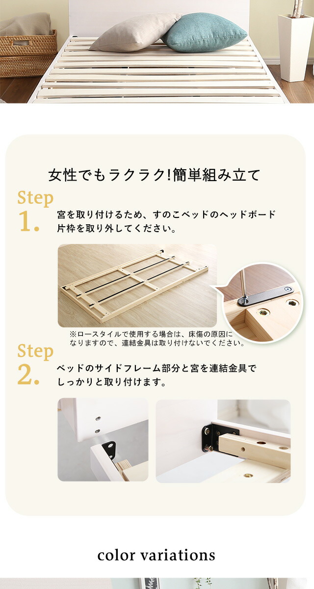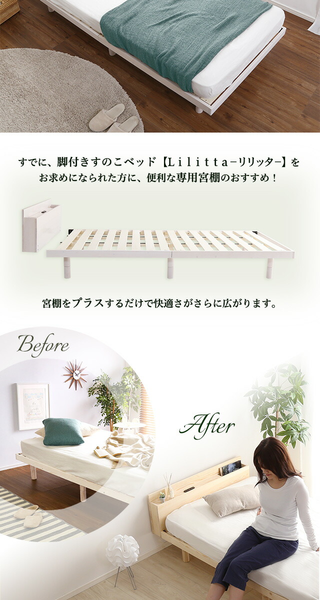 パイン材脚付きすのこベッド リリッタ専用宮単品(セミダブル用) 代引/同梱不可[ホワイト]