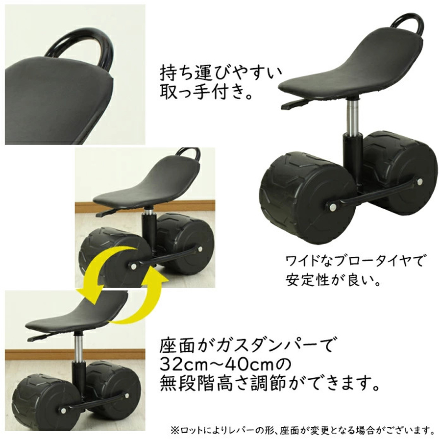 大型タイヤ付き チェア 作業用 移動チェアー ガーデンチェア 椅子 いす イス 作業椅子 移動椅子 腰掛け スツール ガーデニング 園芸用品 MR-5 【代引/同梱不可】