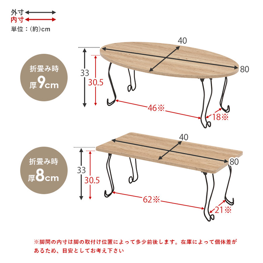 折れ脚テーブル 丸型 80×40cm 猫脚 MT-6864[ブラウン]