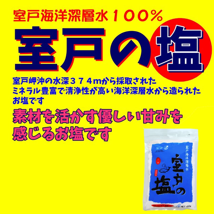 室戸の塩 450g×5袋 国産 塩 お塩 しお 食塩 焚き上げ 濃度の濃い 海水 まろやか しっとり 粒子が細かい お菓子 パン作り 梅干し 干物 山菜漬け海洋深層水塩 濃縮 ミネラル にがり 四国 高知 海洋 室戸海洋深層水 【代引不可】【同梱不可】