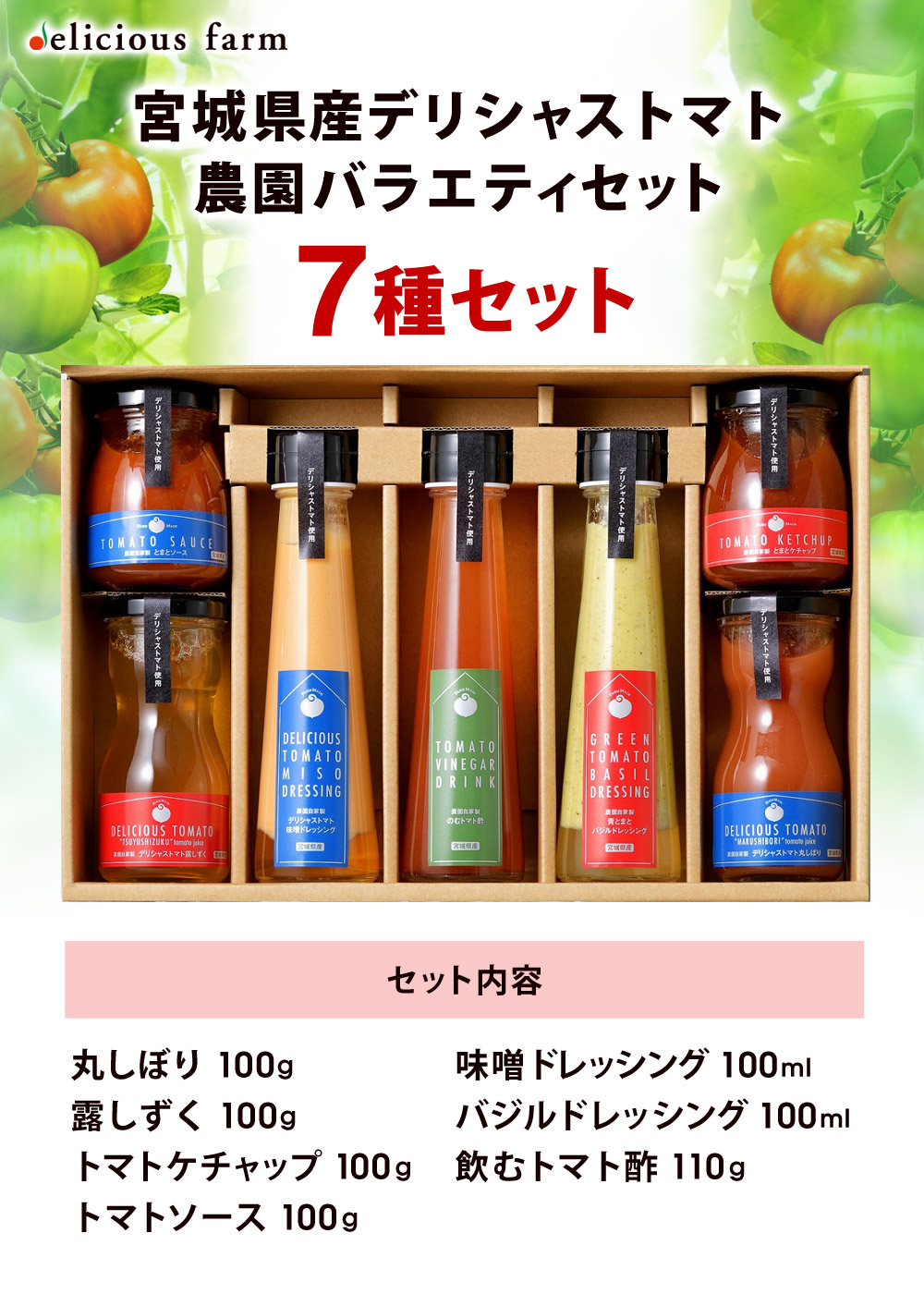 農園バラエティーセット 7種類 詰め合わせ トマトジュース ドレッシング 調味料 飲む酢 デリシャストマト デリシャスファーム 宮城県産 ギフト プレゼント お歳暮 お中元 誕生日 贈答 お祝い 内祝い 結婚祝い 引き出物 出産祝い 快気祝い NB-7