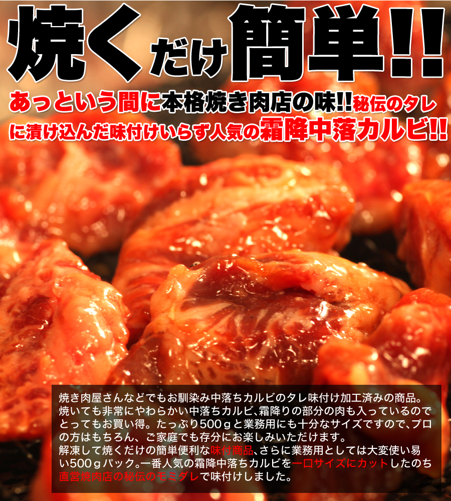 牛霜降中落ちカルビどっさり500g(味付け) 【代引/同梱不可】