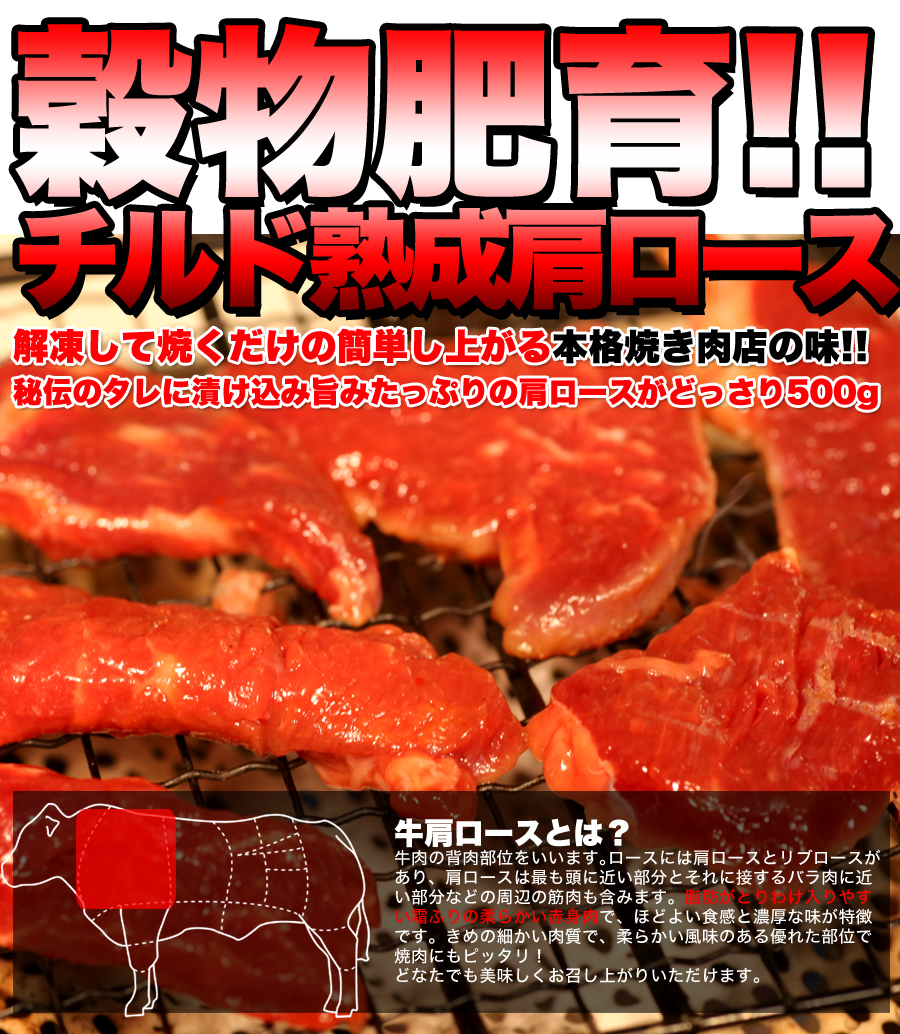 濃厚な肉汁ジュワ~!!チルド熟成肩ロース焼肉どっさり500g(味付け) 【代引/同梱不可】