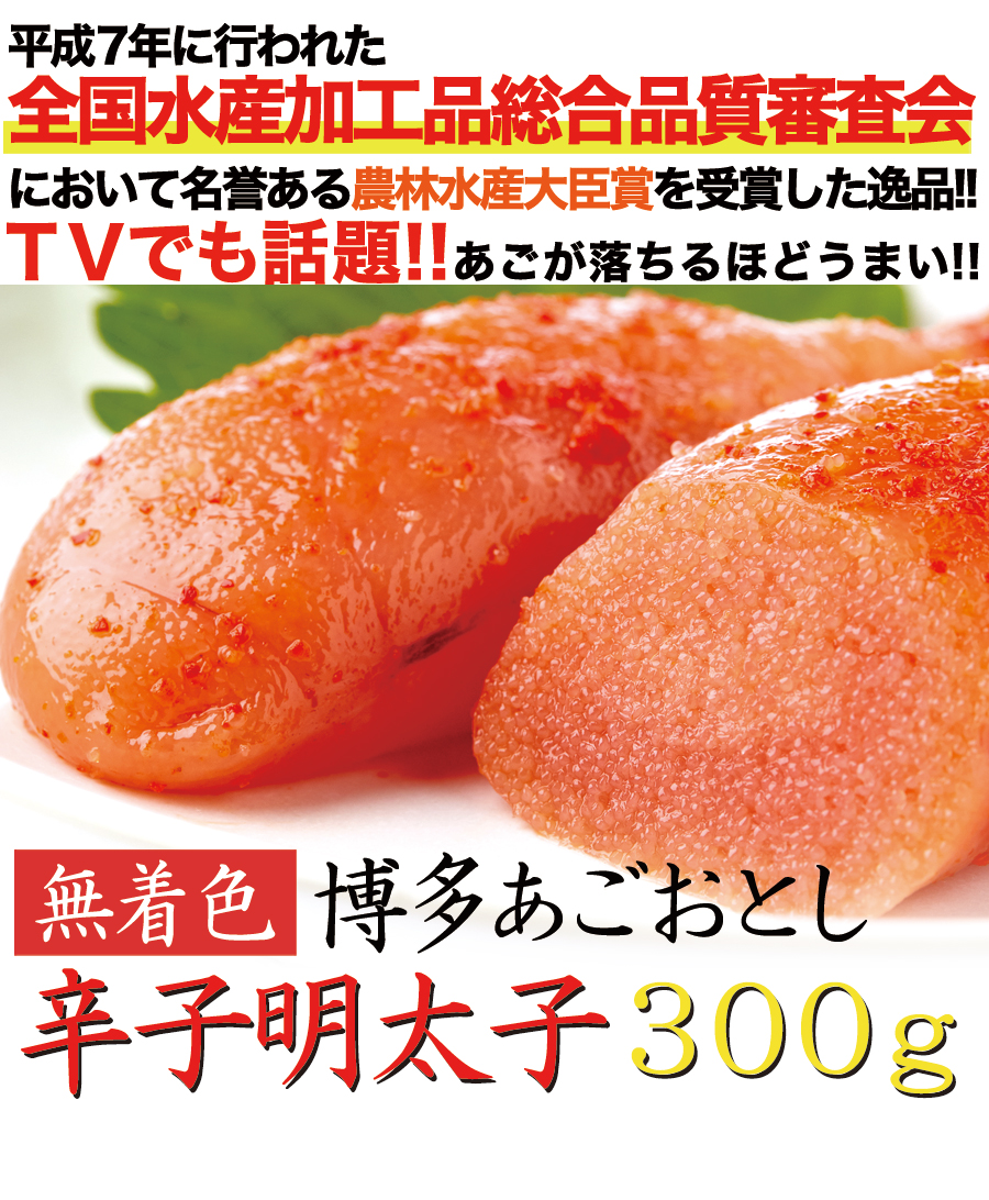 TVでも話題!!あごが落ちるほど美味い!!博多あごおとし【無着色】辛子明太子300g 【代引/同梱不可】