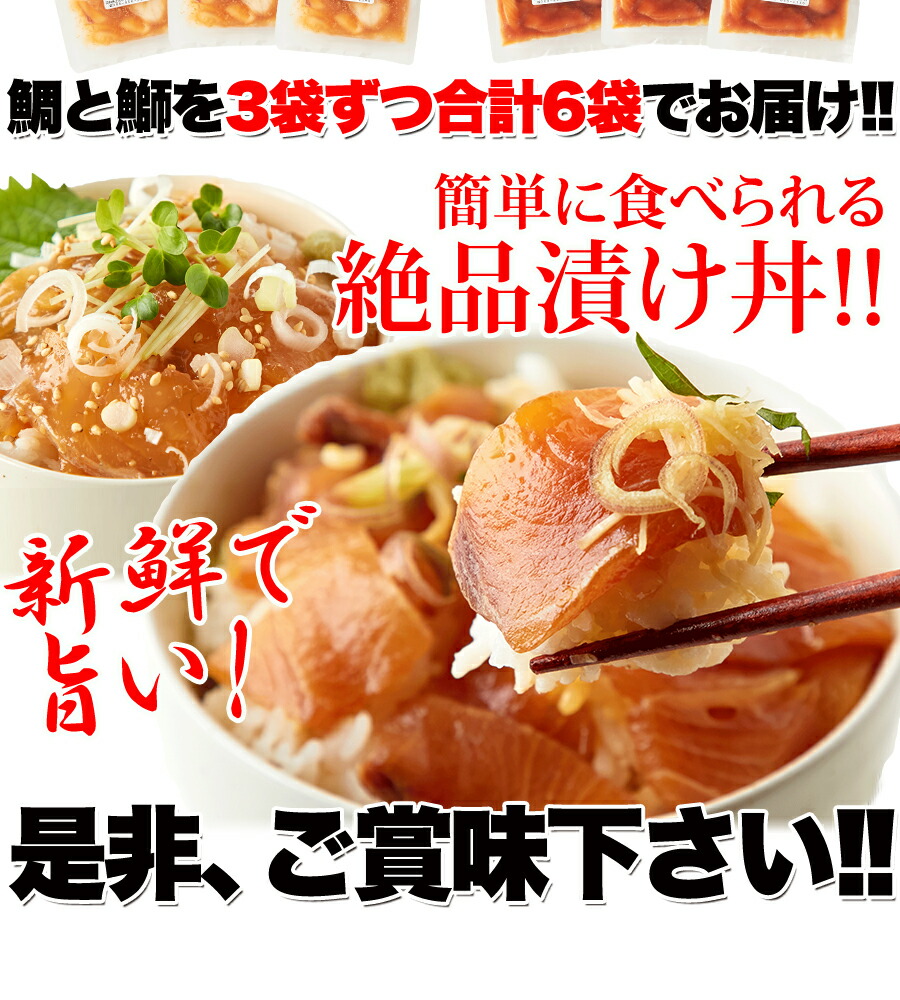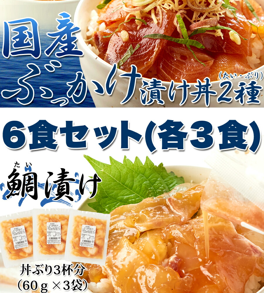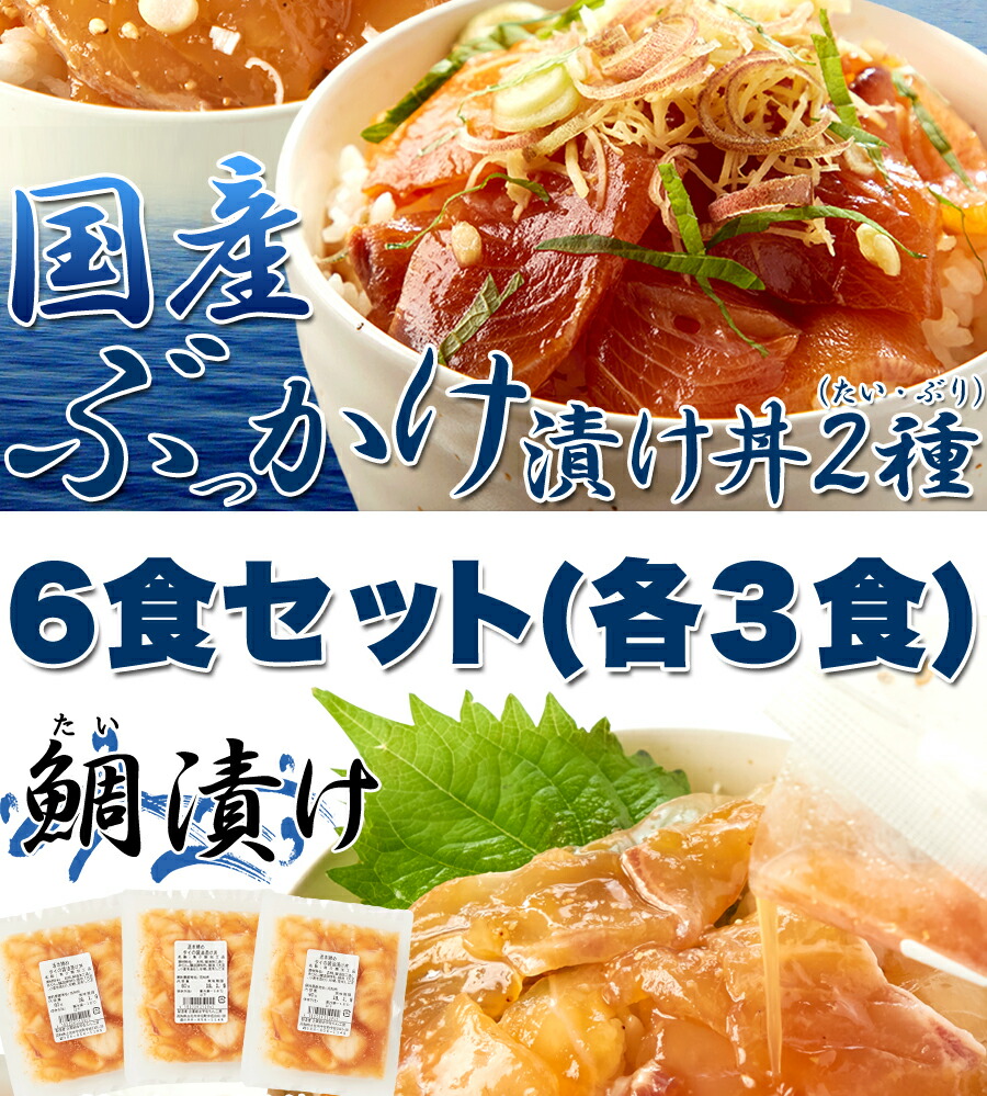 国産ぶっかけ漬け丼2種(鯛×3食、鰤×3食) 【代引/同梱不可】