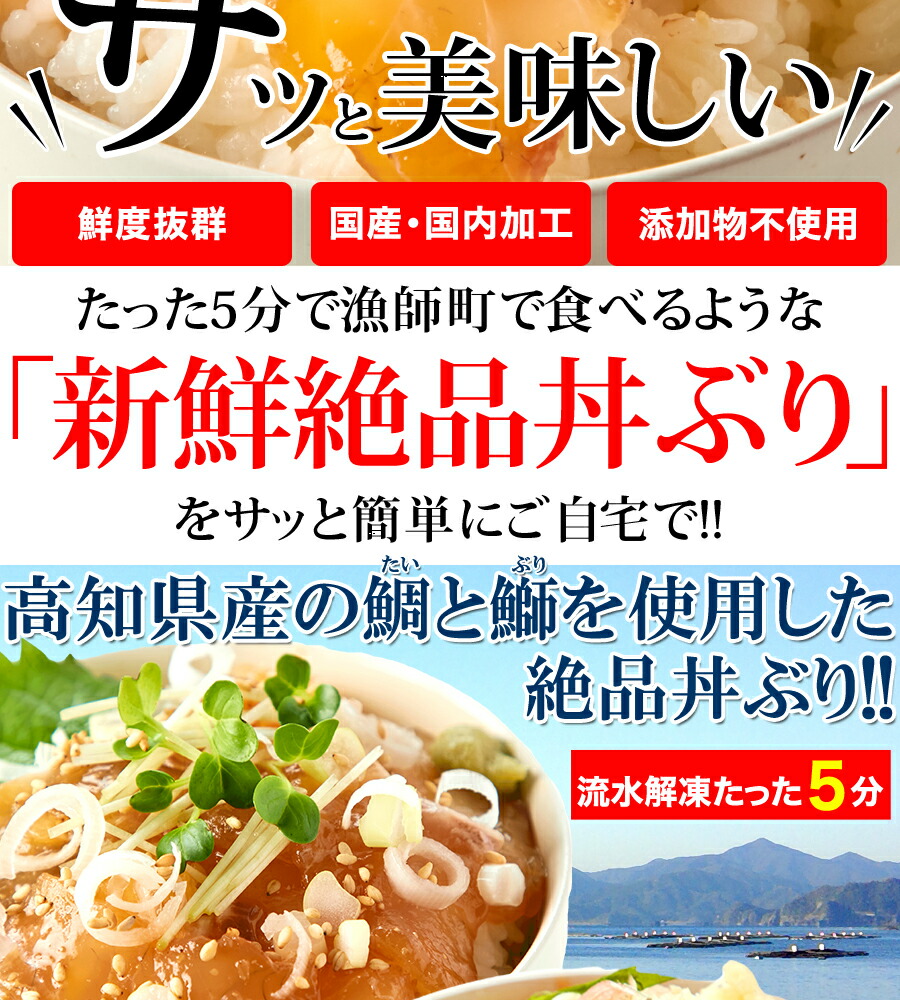 ■商品名:国産ぶっかけ漬け丼2種(鯛×3食、鰤×3食)<冷凍商品>