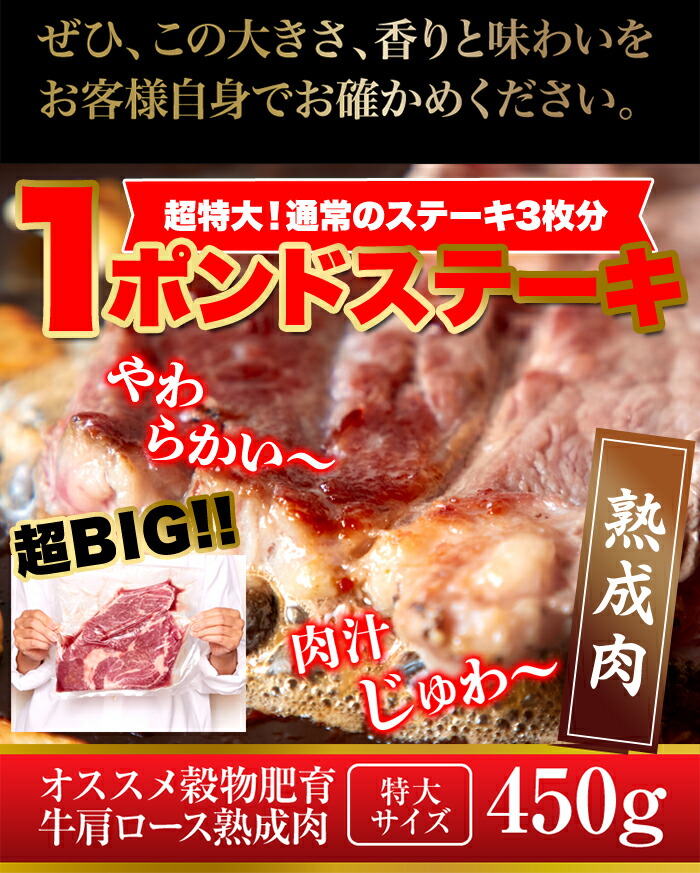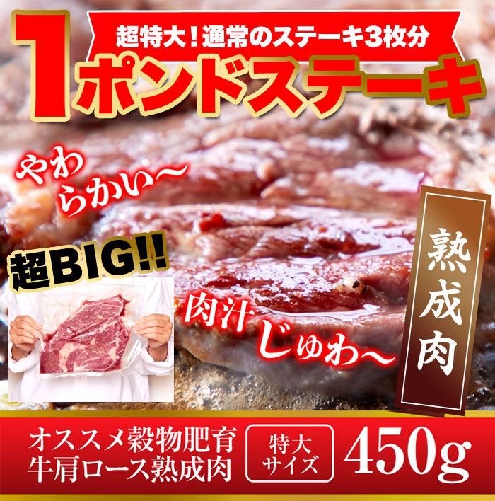 牛肩ロース熟成肉1ポンドステーキ(450g) 【代引/同梱不可】
