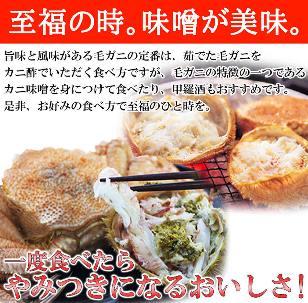 検索キーワード: 北海道産ボイル毛ガニ 400g×2尾 茹でたて 濃厚 味わい 北海道産 国産 日本産 蟹 カニ かに 海鮮 海の幸 魚介