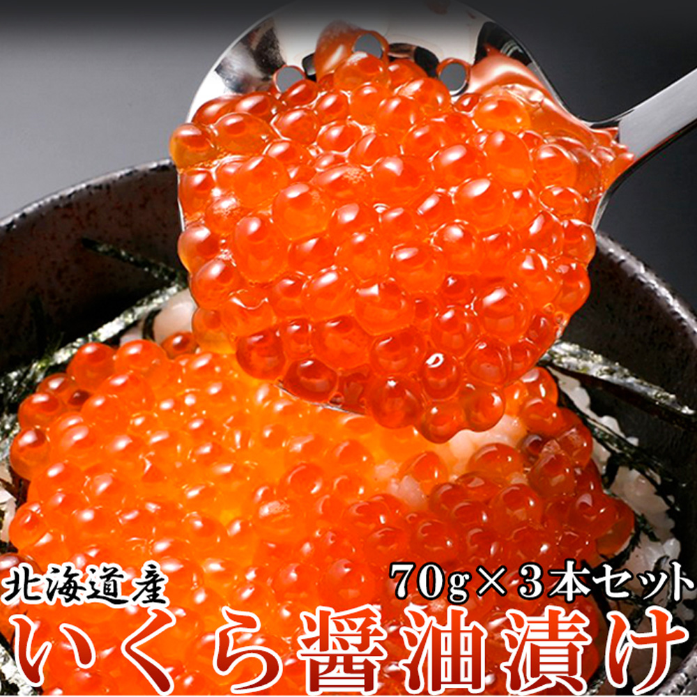 北海道産いくら醤油漬け70g×3瓶 北海道産いくら醤油漬け 70g×3本セット 贅沢 上質 イクラ 国産 日本産 北海道産 魚介 海鮮 海の幸 【代引不可】【同梱不可】