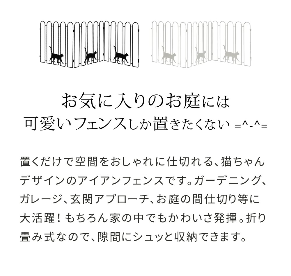 置くだけで空間をおしゃれに仕切れる、猫ちゃんデザインのアイアンフェンス。
