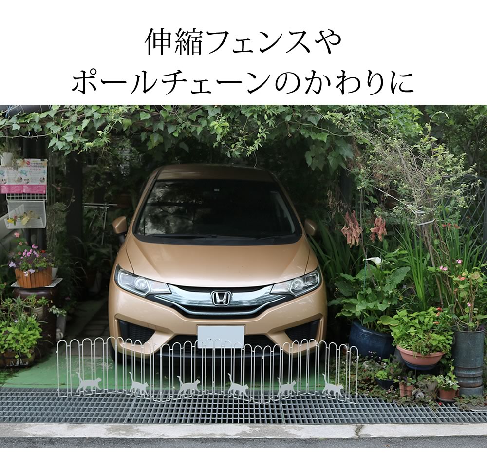 さっと広げて、さっと畳める三連フェンスは、カーポートや車庫、青空駐車場にもぴったりです。