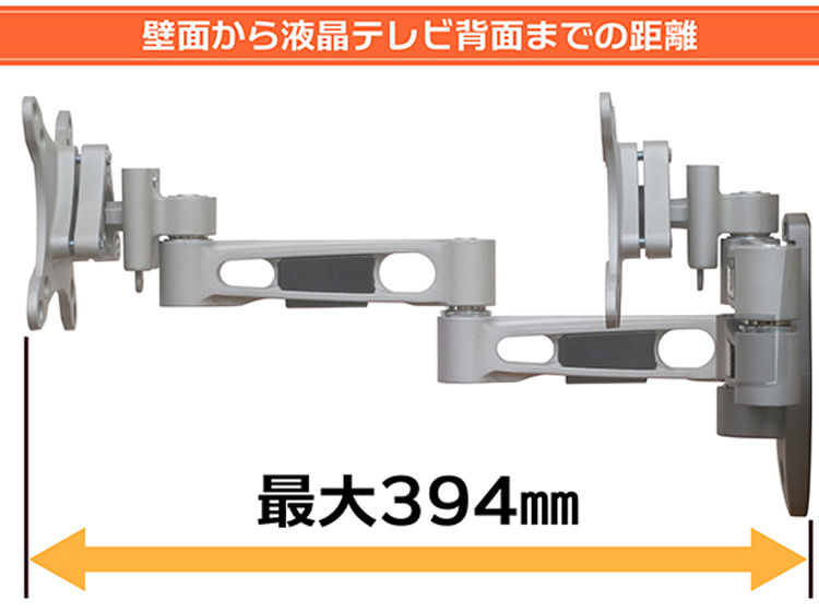 ●壁から液晶テレビ背面までの距離:最大394mm