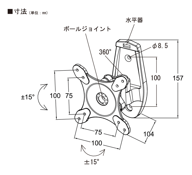 ボールジョィント部 (上下左右):土15° アーム部各閲節: 360°
