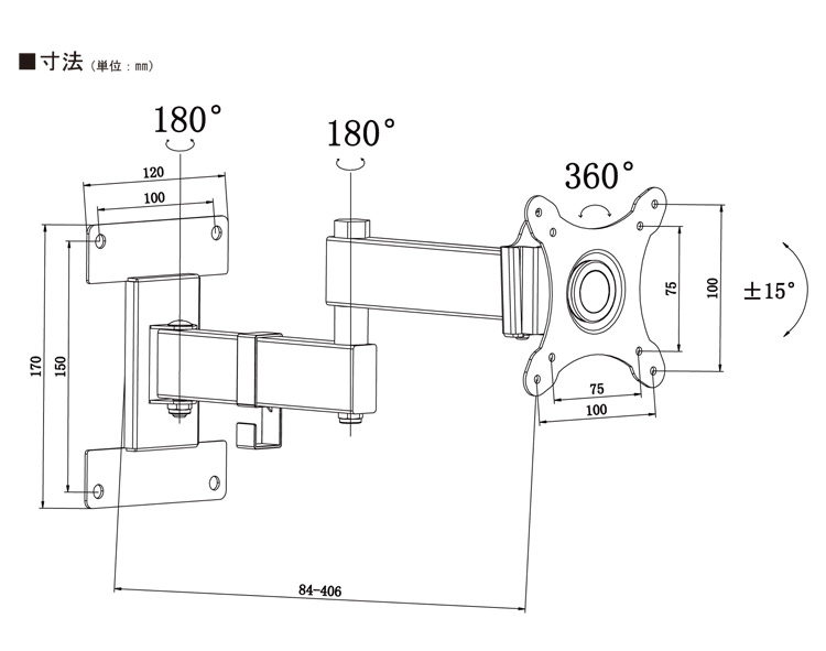 横幅:120mm 高さ:170mm 奥行き:84~406mm