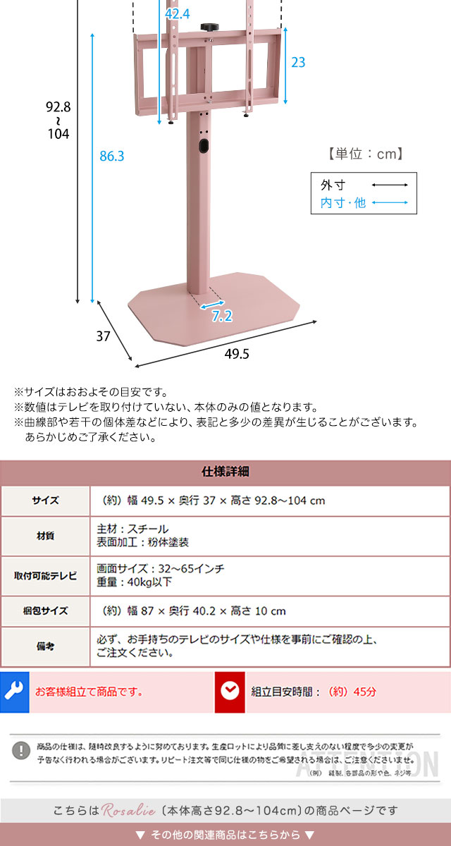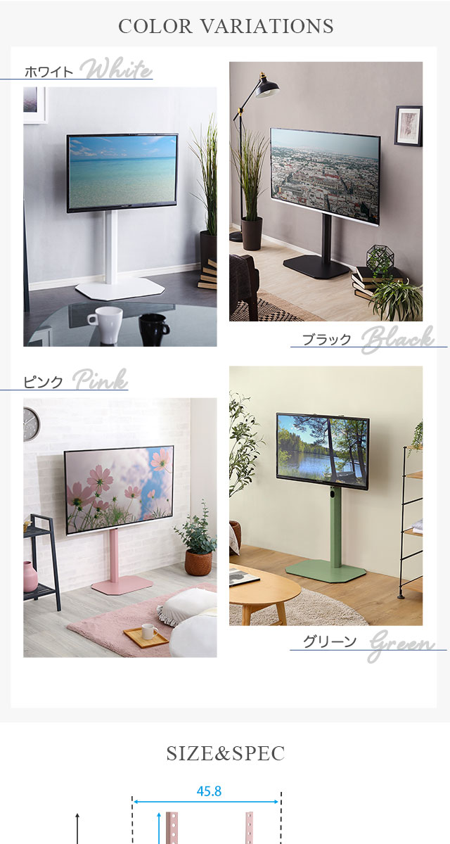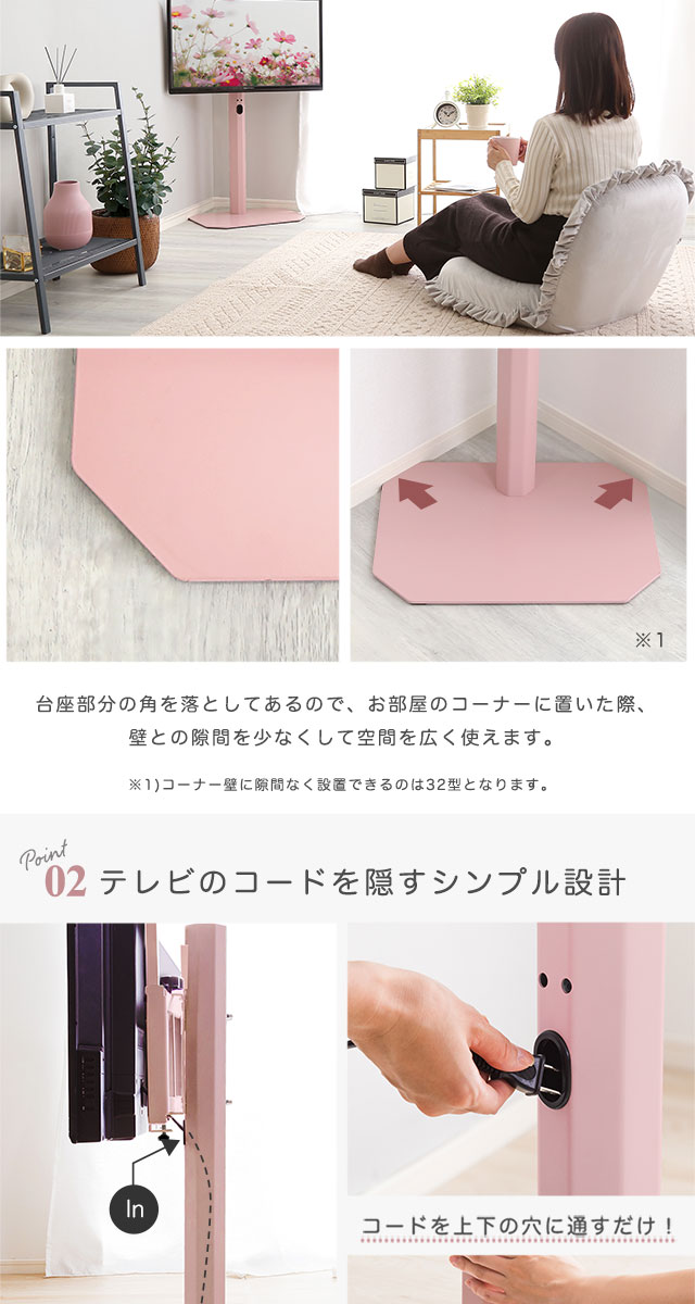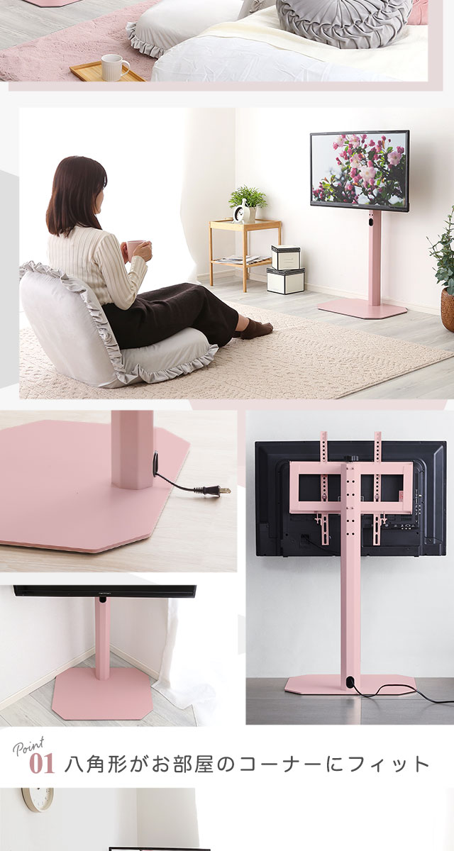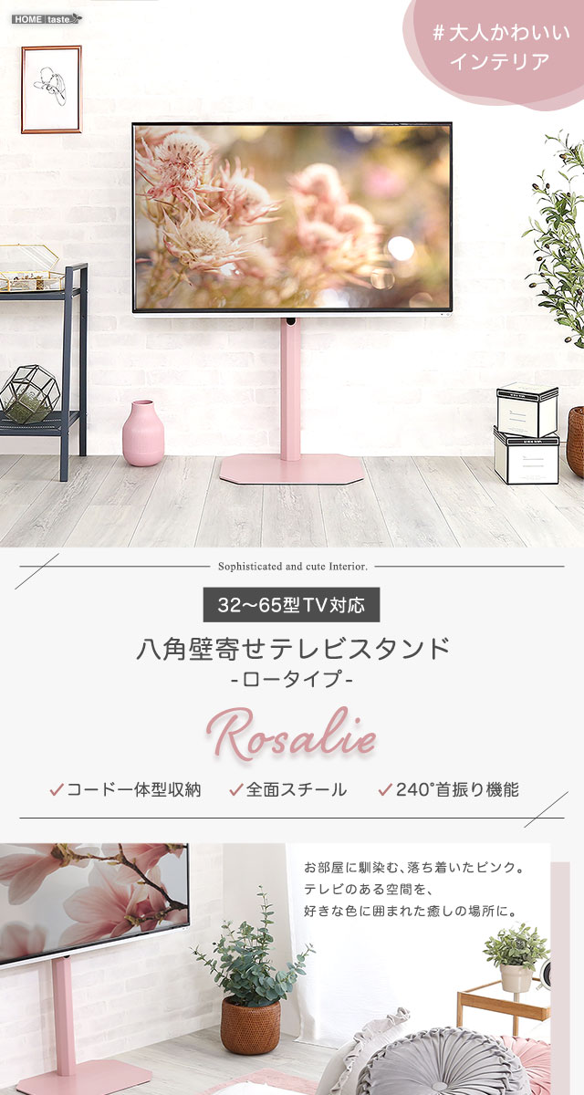 八角壁寄せ テレビスタンド ロータイプ 首振り 32~65型対応 【Rosalie-ロザリー-】 震度7試験クリア 大人かわいいインテリア 壁寄せテレビスタンド テレビ台 壁寄せテレビ台 TVスタンド 背面収納 自立式 首ふり おしゃれ 【代引不可】[ブラック]