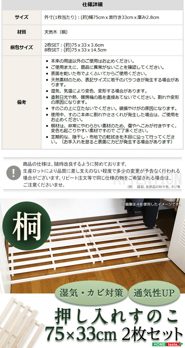 押し入れ桐すのこ 2枚入り 天然木使用 通気性抜群 抗菌・防カビ・調湿効果 軽量 押入れすのこ すのこ 桐 押入れ 押し入れ 代引/同梱不可[ナチュラル]