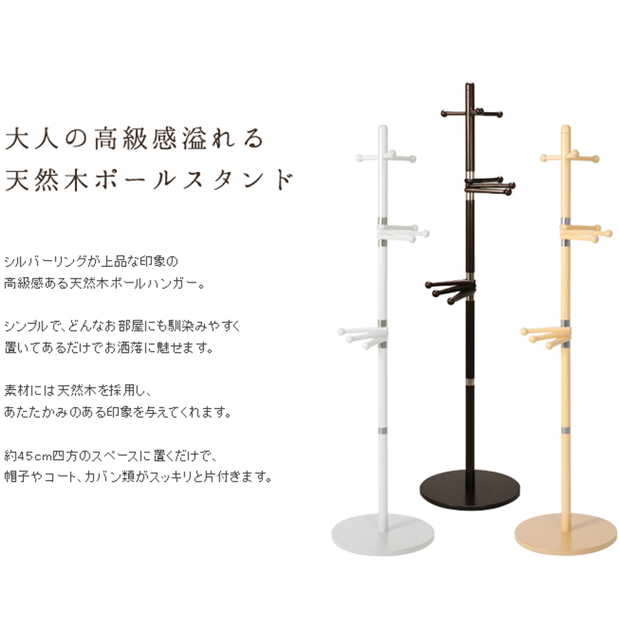 ポールスタンド天然木 高さ176cm 収納 衣類収納 ジャケット コート スカート 帽子 バッグ PH-509-WH[ホワイト]