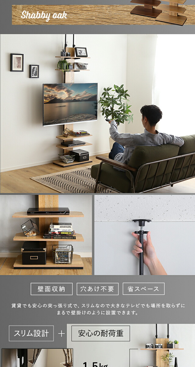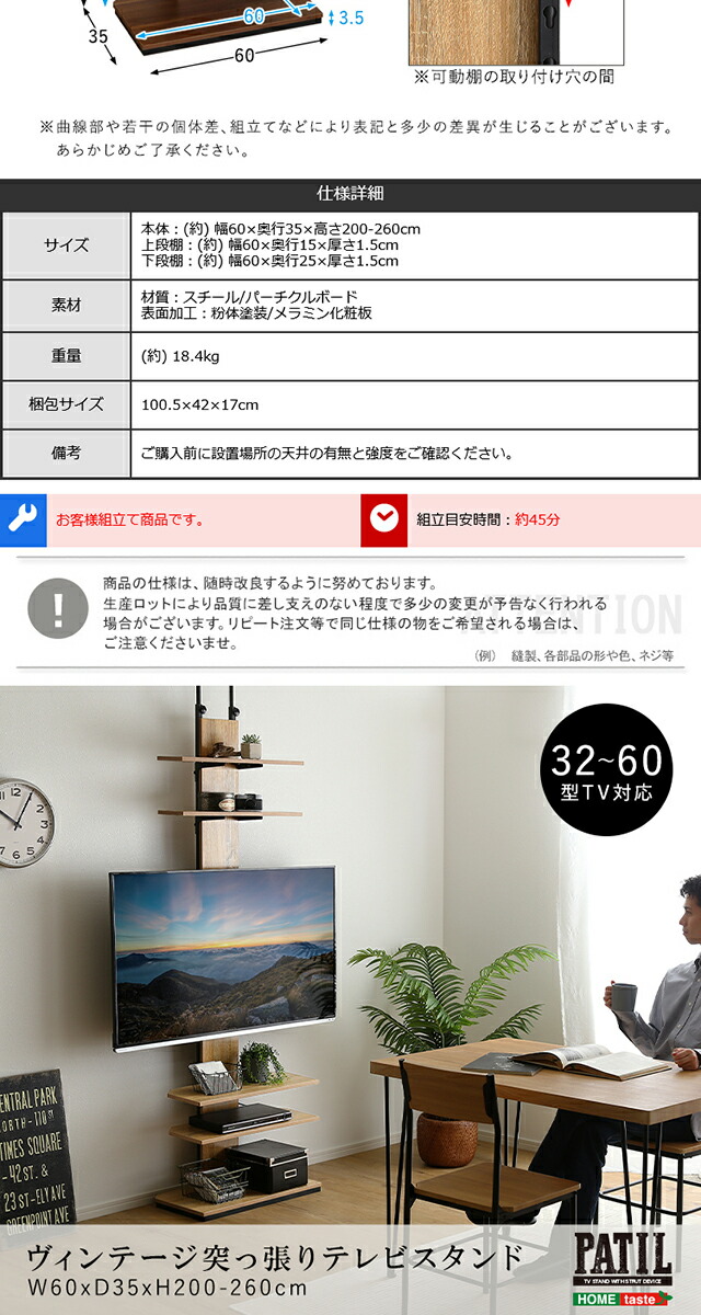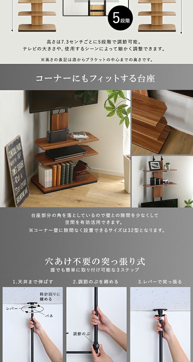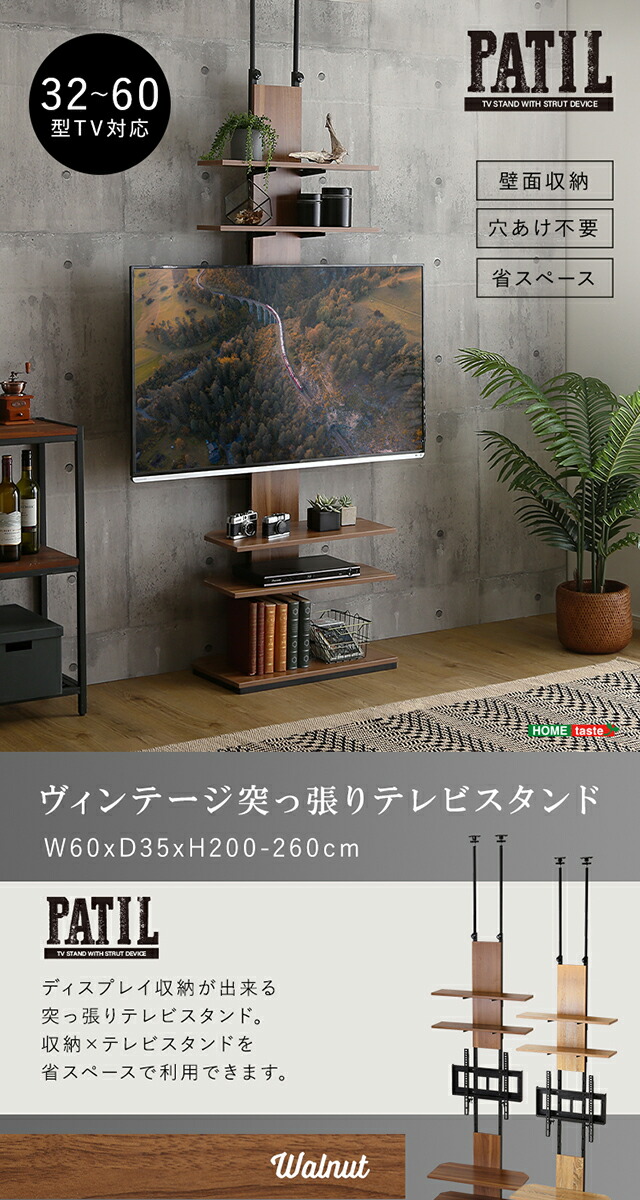 テレビスタンド 突っ張り 32~60型対応 棚板 つっぱり 高さ調節 伸縮 テレビ台 壁寄せテレビスタンド ヴィンテージ突っ張りテレビスタンド 【代引不可】[ウォールナット]