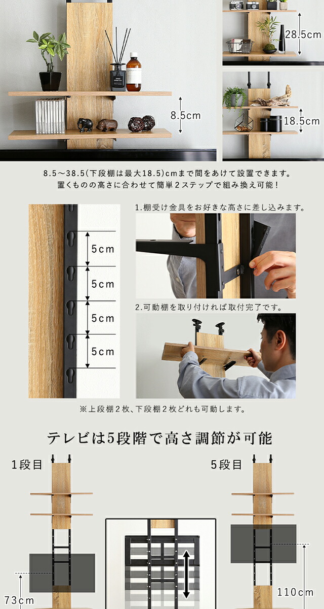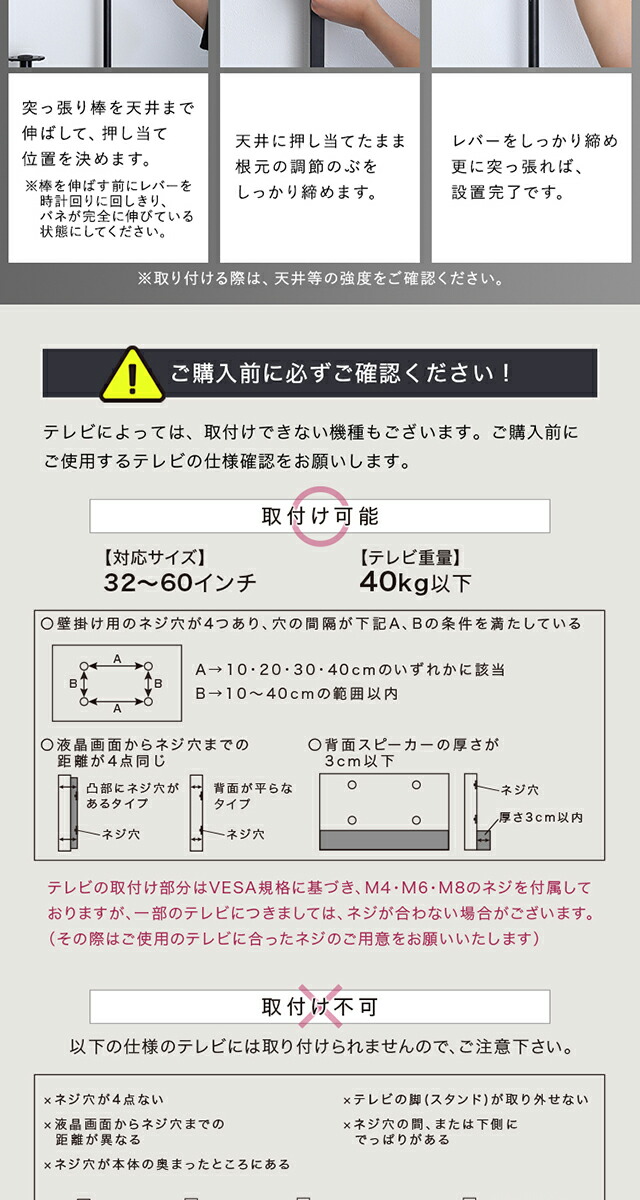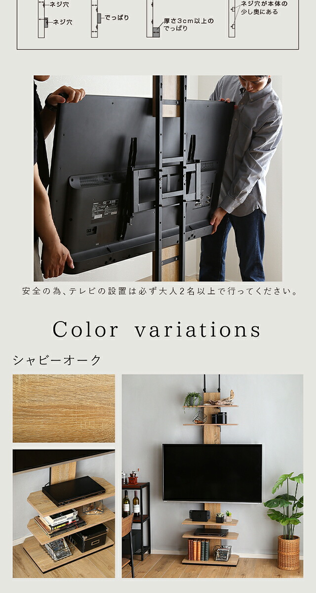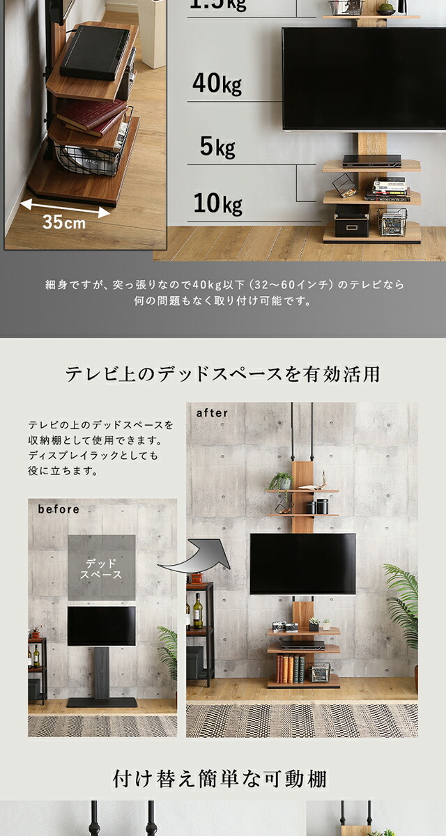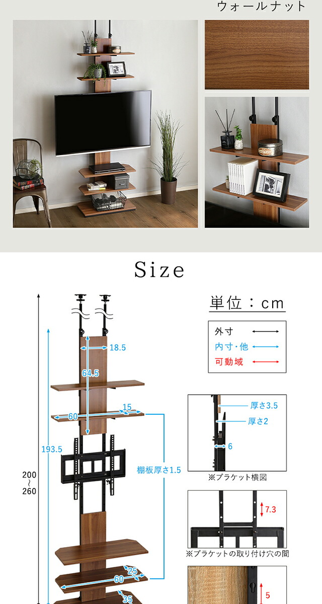 テレビスタンド 突っ張り 32~60型対応 棚板 つっぱり 高さ調節 伸縮 テレビ台 壁寄せテレビスタンド ヴィンテージ突っ張りテレビスタンド 【代引不可】[ウォールナット]