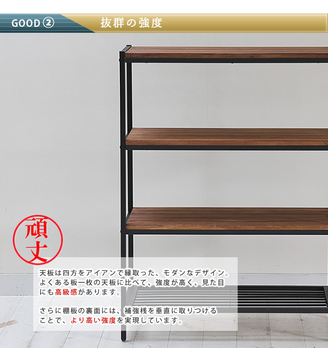 お気に入りの生活雑貨をディスプレイできそう。下段はスチール製のため、強度は抜群。