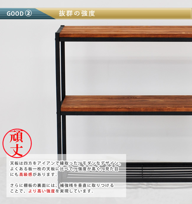 下段はスチール製のため、強度は抜群。それでいて印象は軽やか。