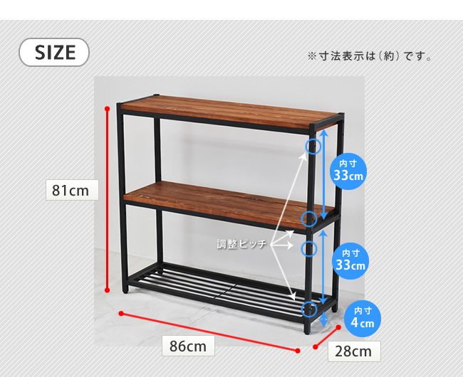 本体:幅 約860×奥行 約280×高さ 約810mm