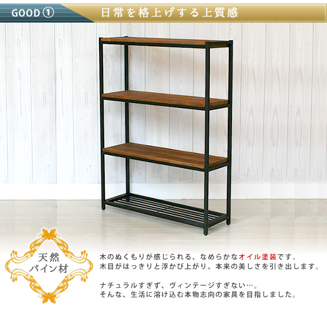 天然木製スリムラック4段 ブリック 天然木製スリムラック4段 PR-860SL-4BRN 4段 アイアン 収納 ウッドラック フリーラック ディスプレイラック インテリアラック 天然木 収納棚 ブラウン オープンシェルフ オープンラック リビング 【代引不可】