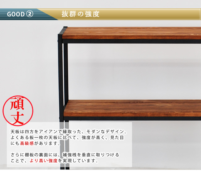 下段はスチール製のため、強度は抜群。それでいて印象は軽やか。