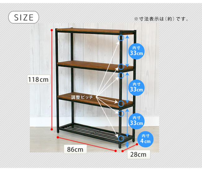本体:幅 約860×奥行 約280×高さ 約1180mm
