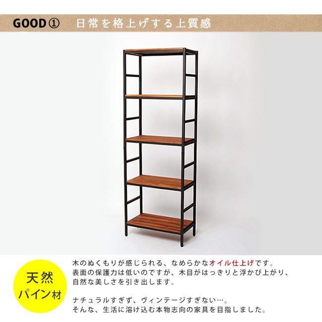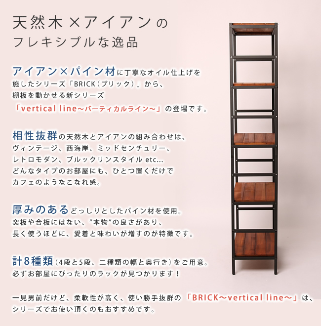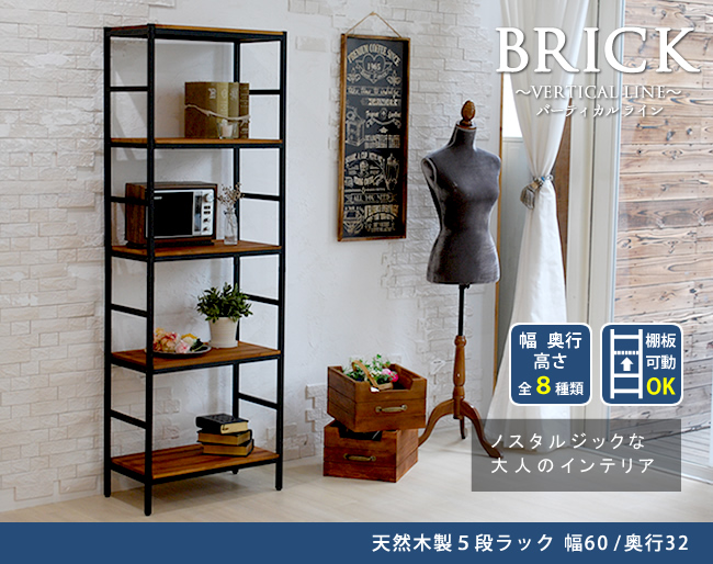 ブリックラックシリーズ5段タイプ 60×32×175 簡単組立 5段 アンティーク モダン ナチュラル オイル ミッドセンチュリー ウッド スタイリッシュ シンプル シェルフ ラック ハンガー インテリア 家具 天然 おしゃれ カフェ バーチカルライン 【代引不可】