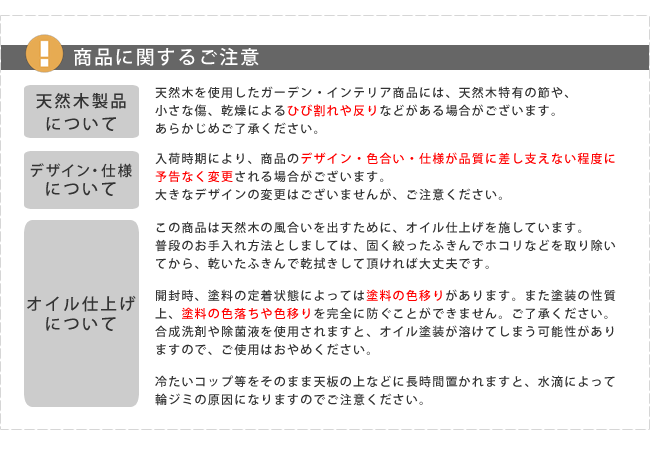 ※天然木のため、節や、乾燥による割れが発生する場合があります。強度に問題はありませんので、安心してご使用ください。