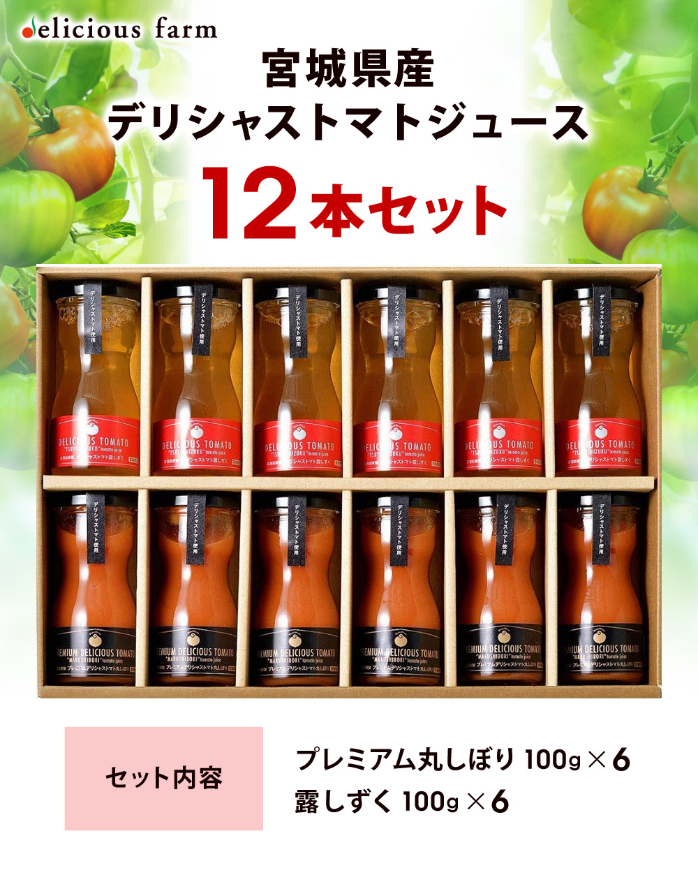 トマトジュース 100g 12本セット プレミアム デリシャストマト 詰め合わせ デリシャスファーム 宮城県産 トマト ジュース 無塩 無添加 ギフト プレゼント お歳暮 お中元 誕生日 贈答 お祝い 内祝い 結婚祝い 引き出物 出産祝い 快気祝い PT-12