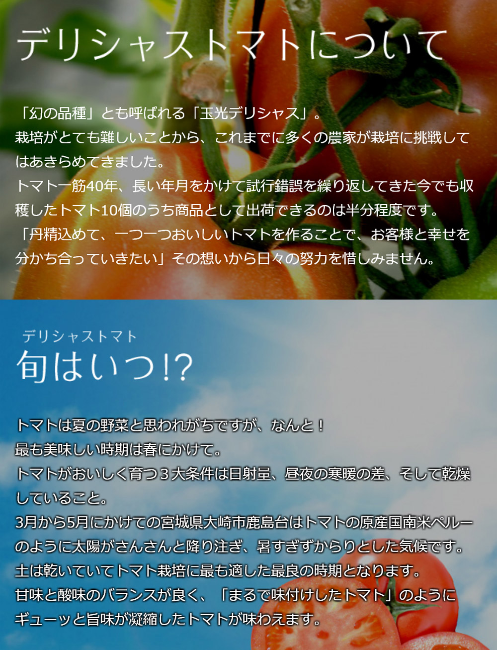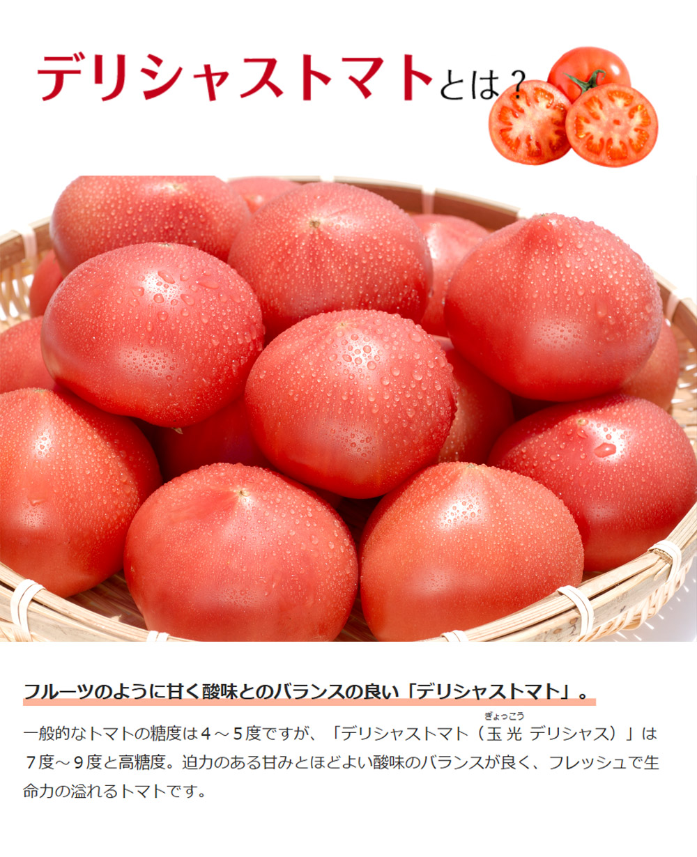 フルーツのように甘く酸味とのバランスの良いデリシャストマトの中でも、糖度10度以上の特別なトマトだけを使用した、濃厚なトマトジュースです。