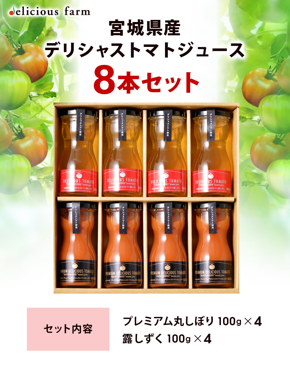 トマトジュース 100g 8本セット プレミアム デリシャストマト 詰め合わせ デリシャスファーム 宮城県産 トマト ジュース 無塩 無添加 ギフト プレゼント お歳暮 お中元 誕生日 贈答 お祝い 内祝い 結婚祝い 引き出物 出産祝い 快気祝い PT-8