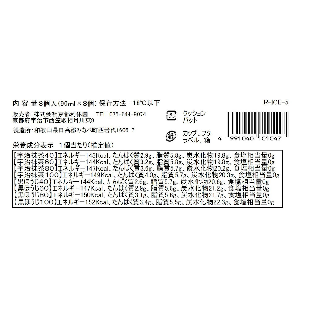 はんなりまったり宇治抹茶アイス・黒ほうじアイスセット 8個入り ほうじ茶 抹茶 食べ比べ ギフト 熨斗対応 贈答 プレゼント 株式会社京都利休園 R-ICE-5 【代引不可】【同梱不可】