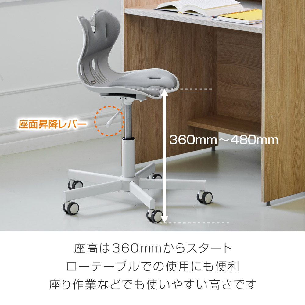 ●骨盤サポートチェアにキャスターがついたガス圧昇降タイプが新登場。