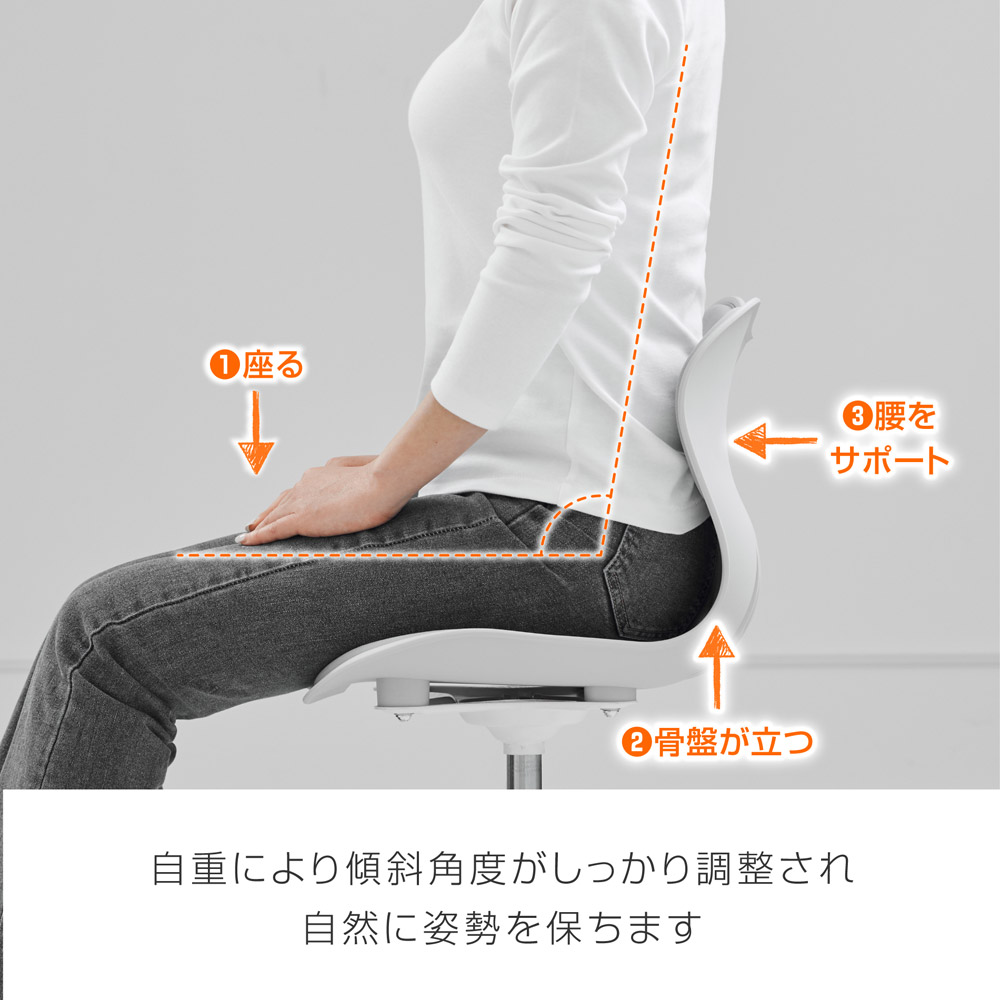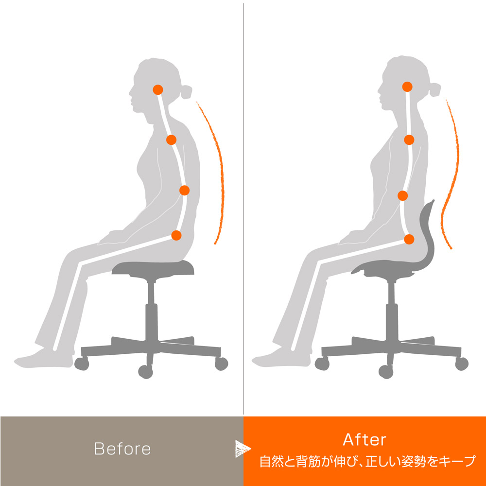 座るだけで背骨を自然なS字ラインに保ちます。