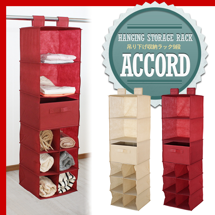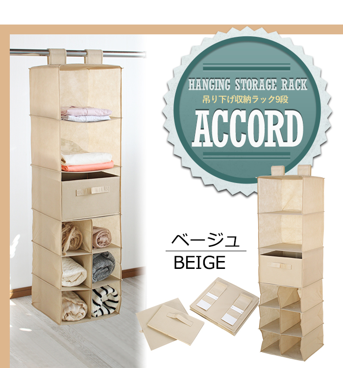 吊り下げ収納ラック 9段 収納ラック 吊り下げ式 便利アイテム クローゼット 収納 ラック ハンガーラック インテリア 衣類収納 小物 帽子 シャツ スカーフ タオル アイデア商品 RK-9-BE[ベージュ]