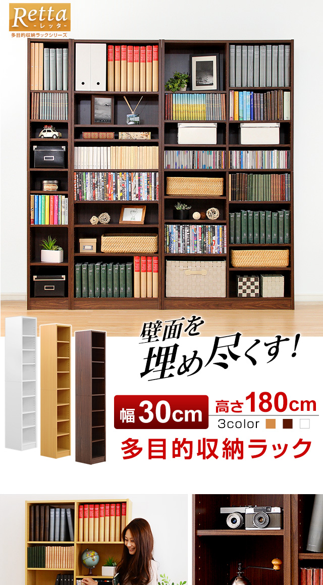 多目的ラック、マガジンラック(幅30cm)スリムで大容量な収納本棚、CDやDVDラックにも|Retta-レッタ- 新生活[ナチュラル]