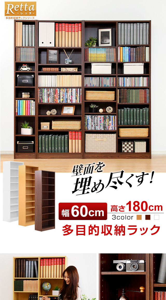 多目的ラック、マガジンラック(幅60cm)オシャレで大容量な収納本棚、レイアウト自由|Retta-レッタ- 新生活[ホワイト]