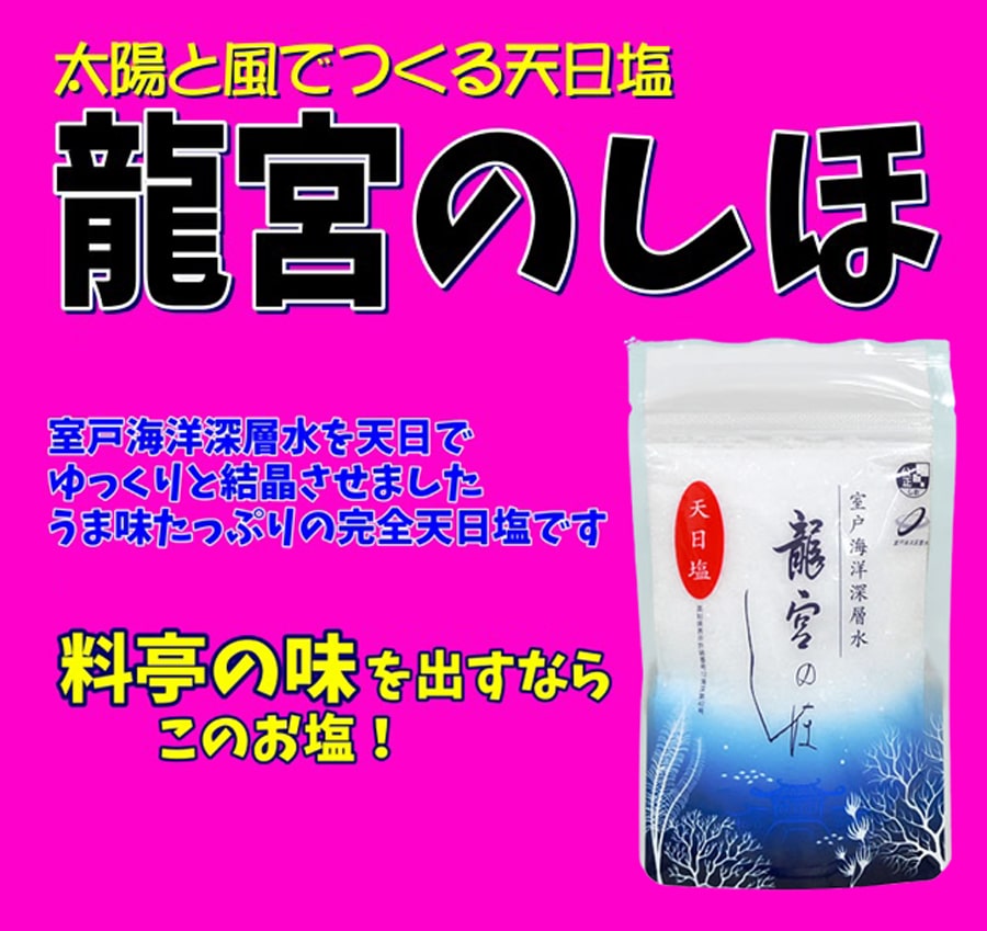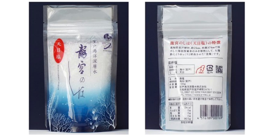 高知県室戸岬沖、約2km、水深374mで採水した海洋深層水のみを原料として、天日だけでつくることにより、