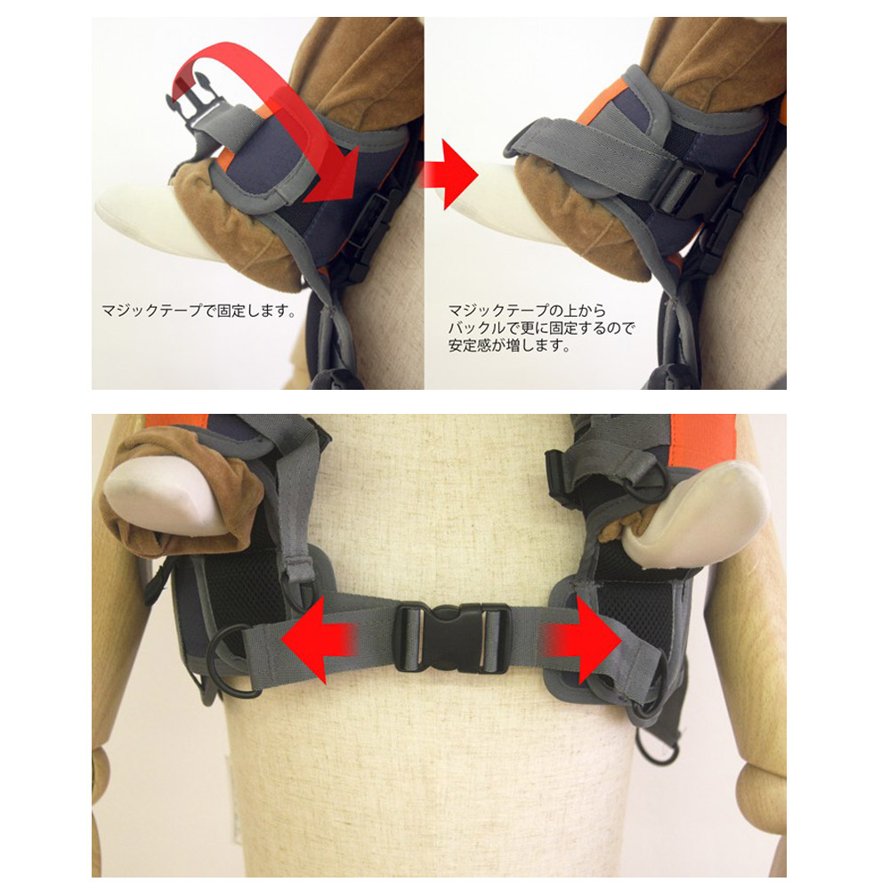 Originalモデルは、あなたのお子様の足を固定するために足首ベルトと、あなたの胸に調節可能なベルトで構成されています。
