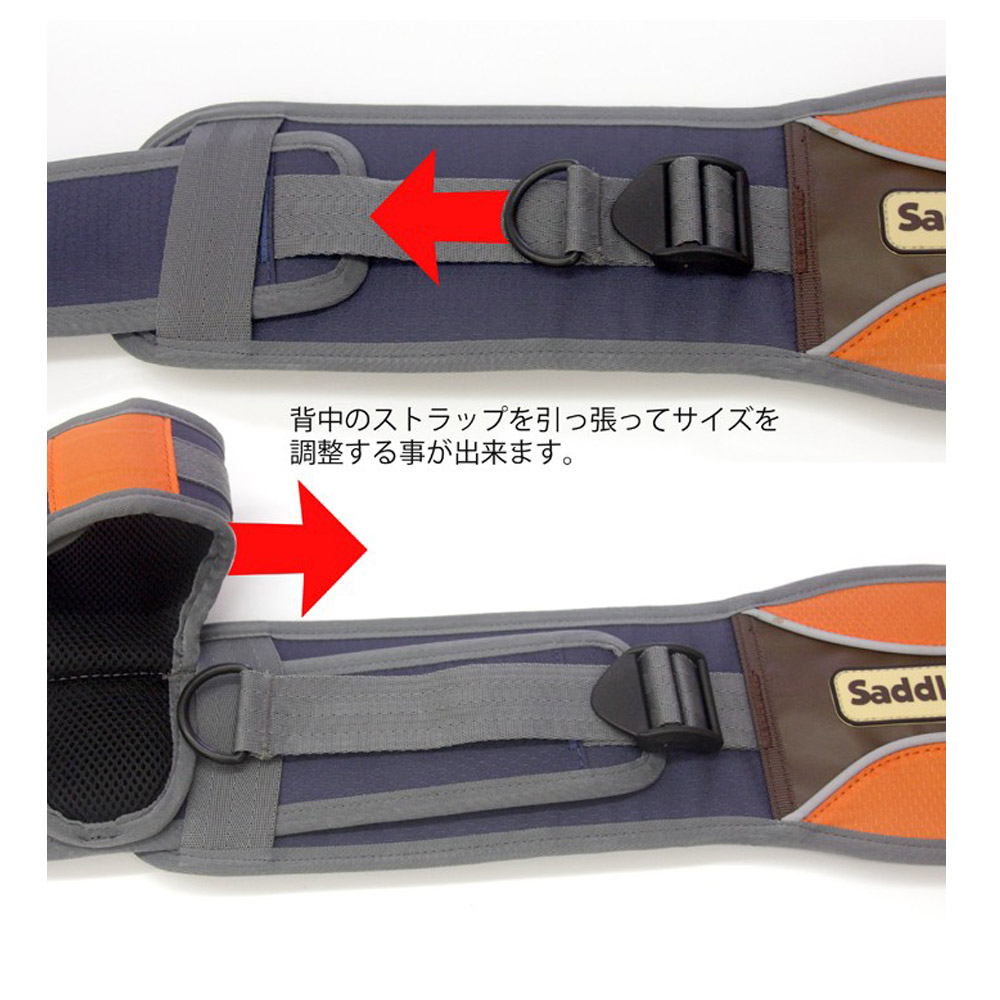 鞍(ポリウレタンフォーム)、背中ストラップ(ナイロンウェビング)、固定バックル(プラスチック)