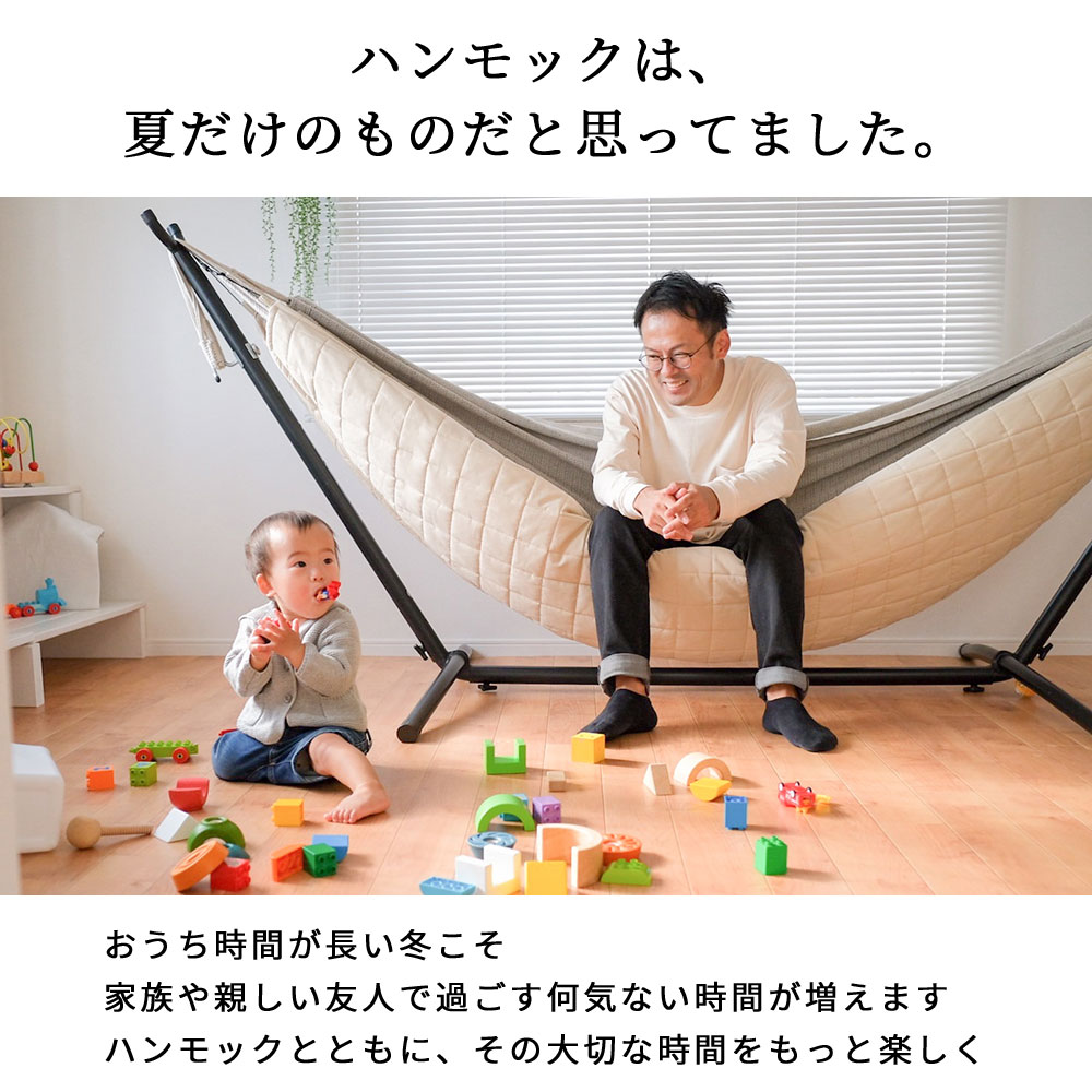 シンプルで温かみのあるデザインで、寒い季節のお部屋で過ごすハンモック時間を至福のひと時にしてくれます。