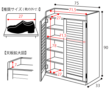 | 内寸 | 扉内 | 幅71.5×奥行27×高さ78cm |