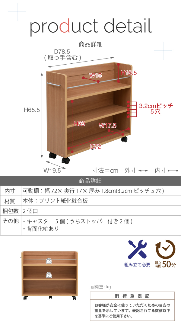 [外寸](1個あたり)幅19.5×奥行78.5×高さ65.5cm