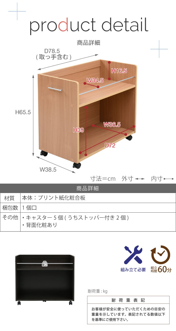 [外寸](1個あたり)幅38.5×奥行78.5×高さ65.5cm