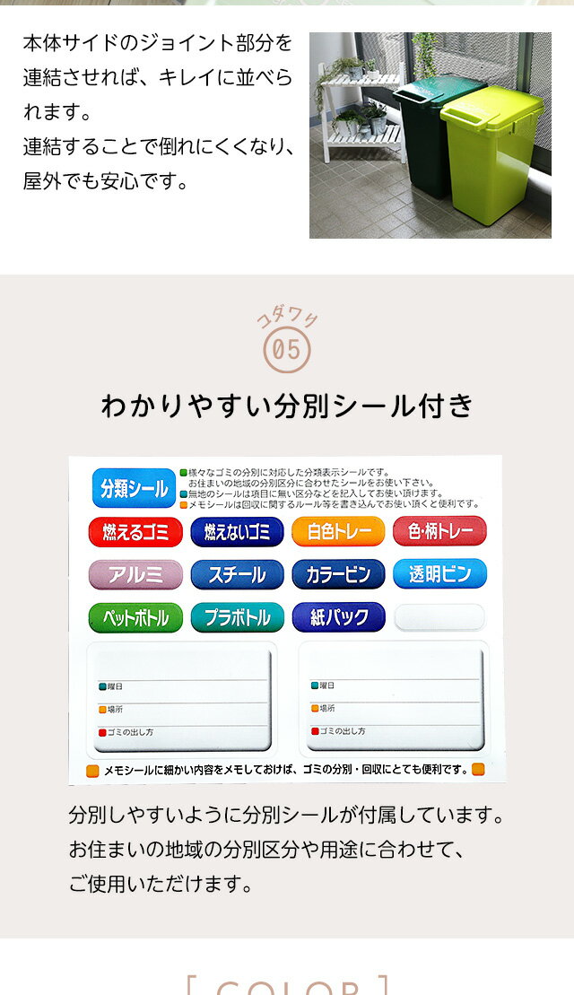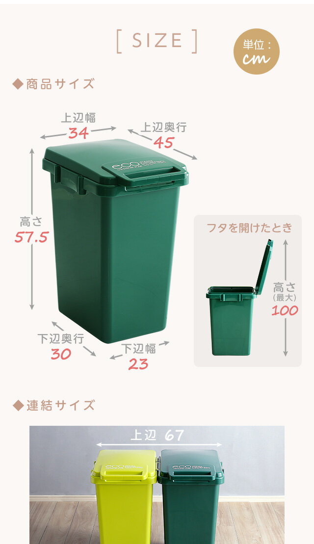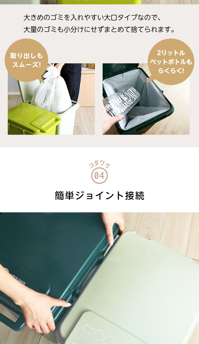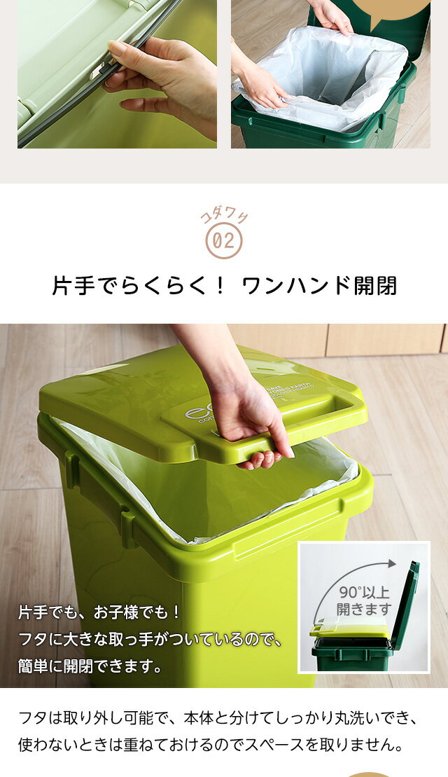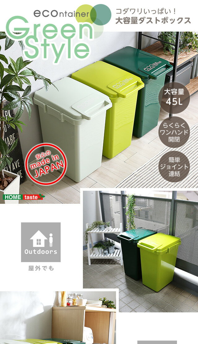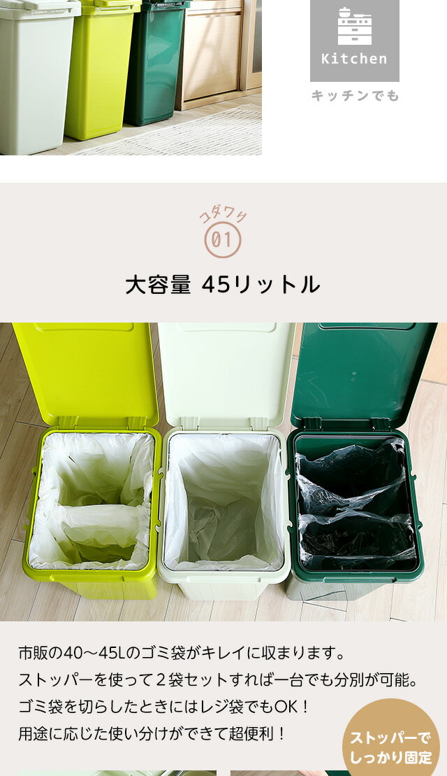 ゴミ箱 おしゃれ 45リットル ふた付き 日本製 ダストボックス 大容量45L ジョイント連結対応 ワ[グリーン]